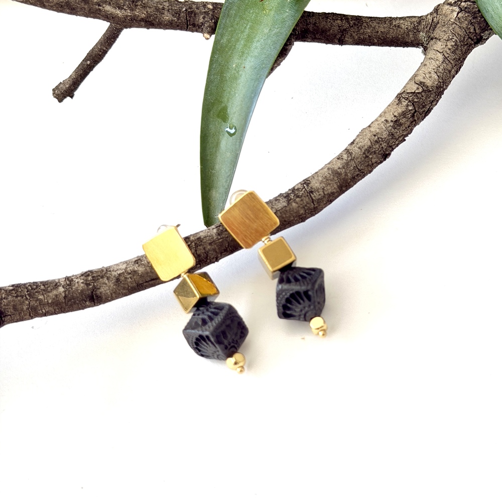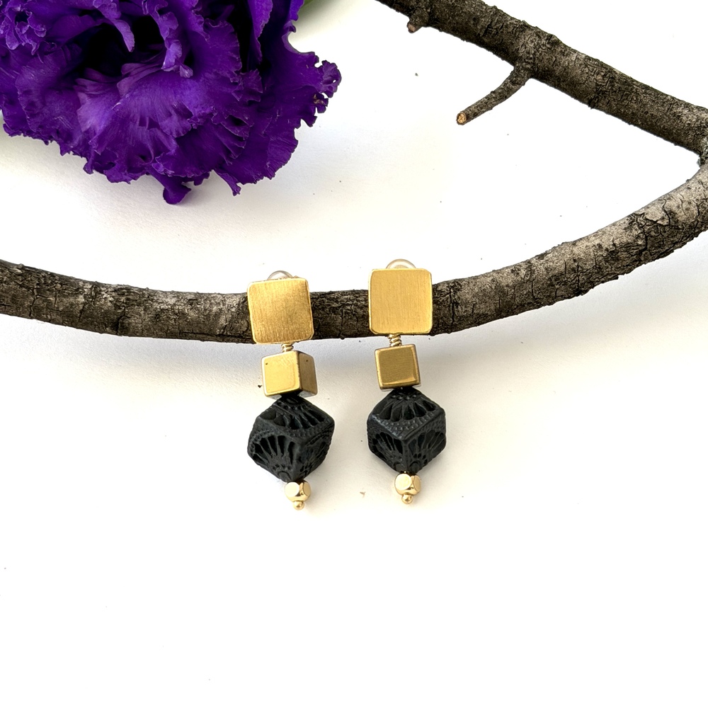 Aretes barro negro cubo