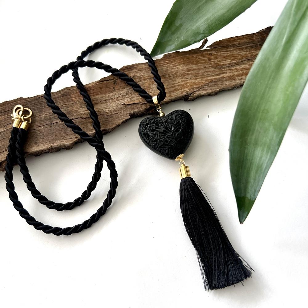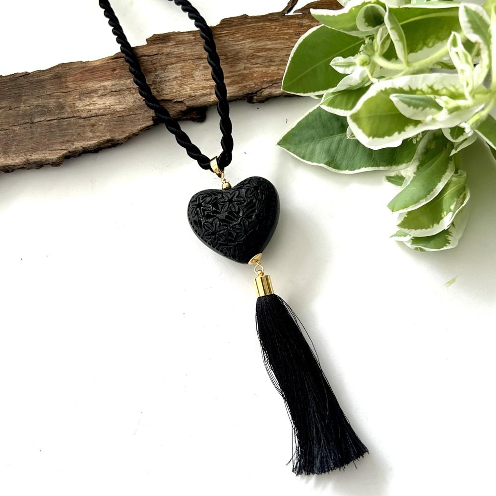 Collar Barro Negro Corazon Largo