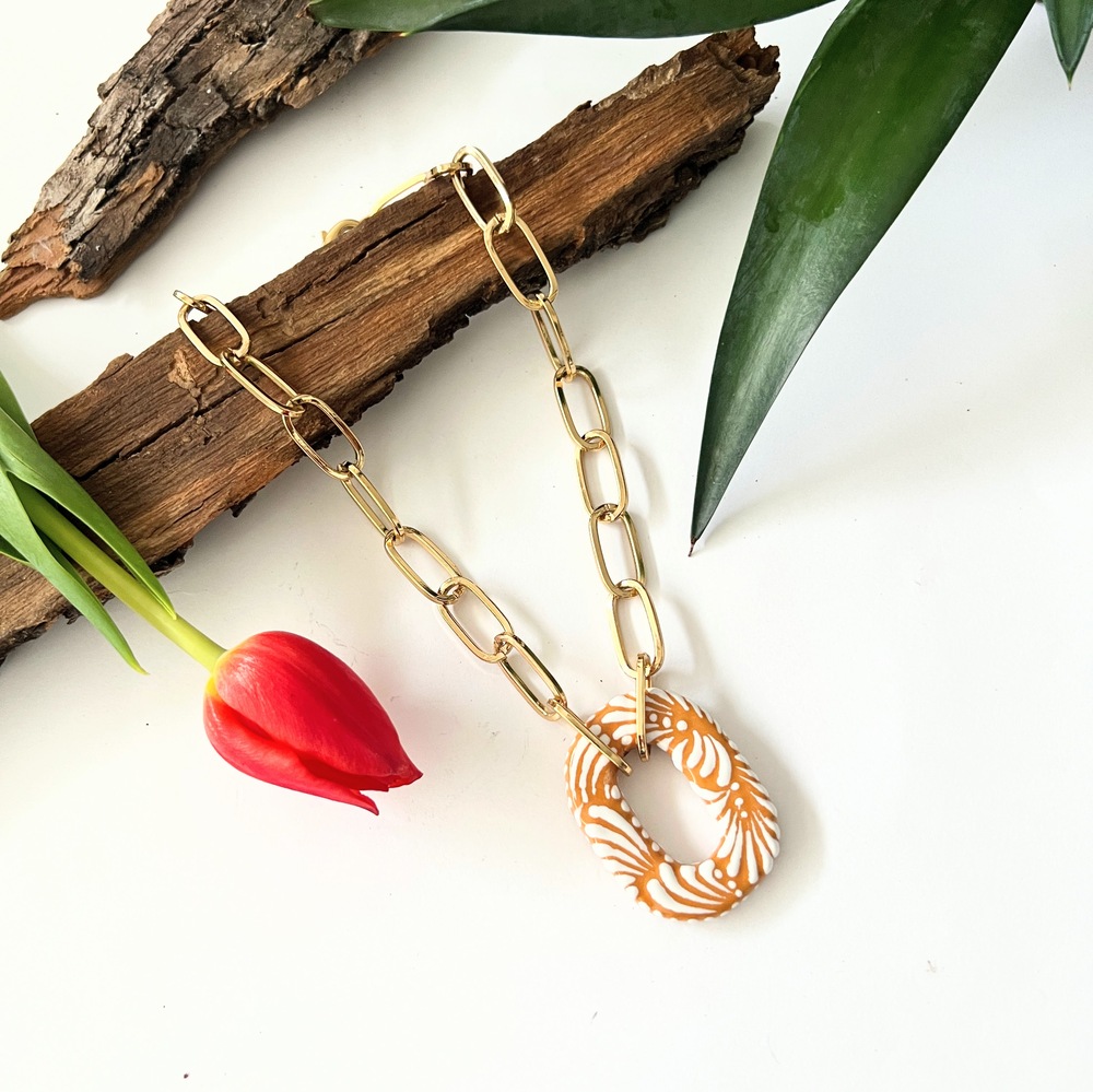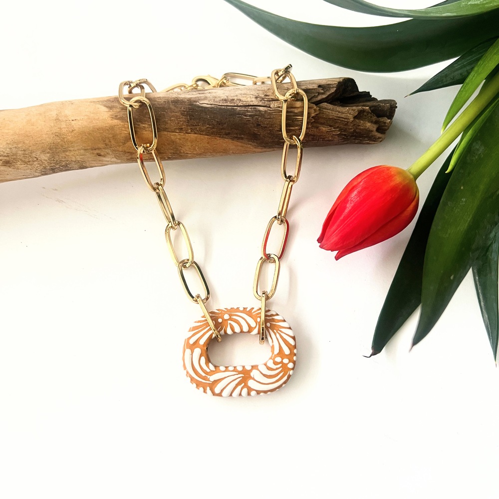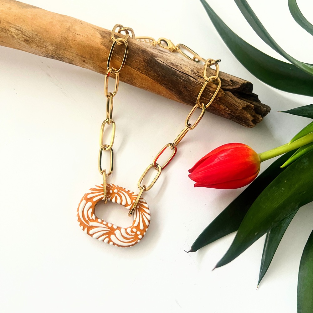 Moderno collar talavera ocre eslabón, original, diferente, único. Así es este collar.