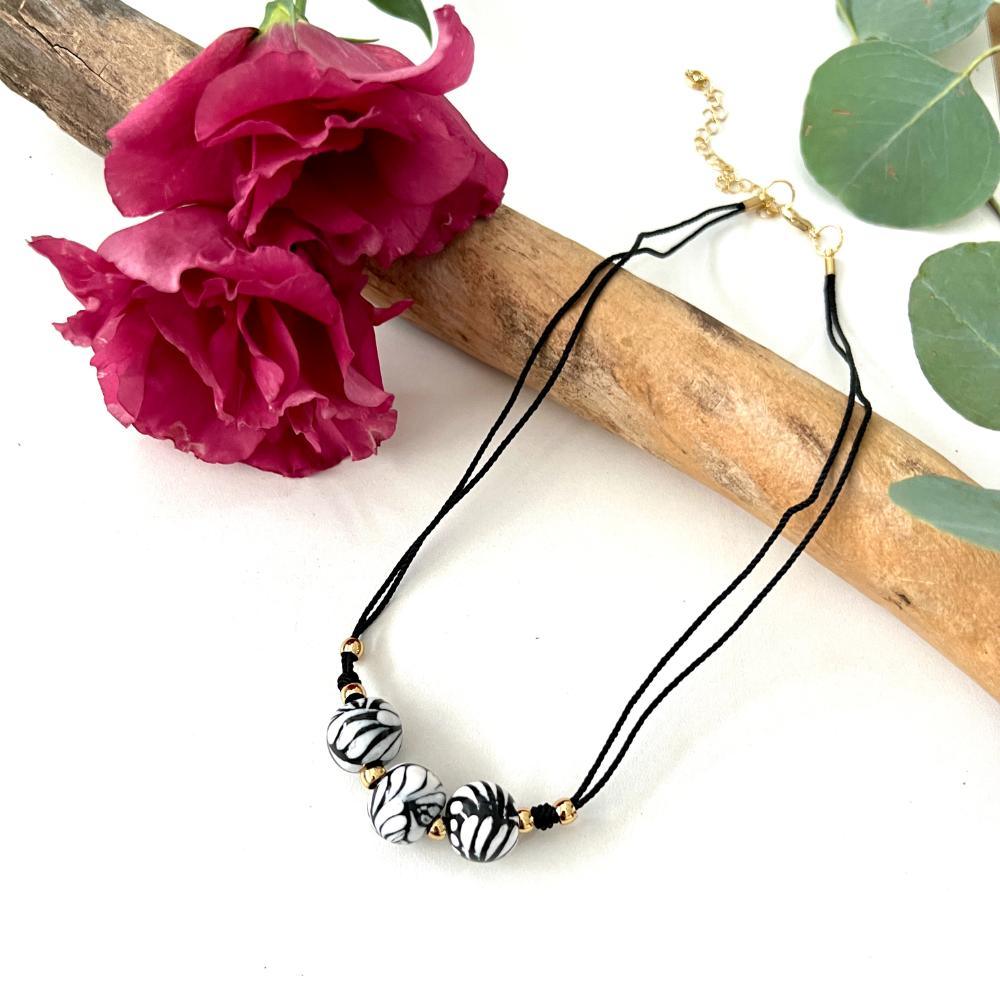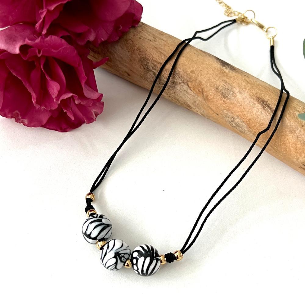 Lindo collar tres dijes talavera negra. Este collar es casual, original y fácil de combinar. El collar es perfecto para una blusa lisa de cuello redondo, o incluso con una blusa camisera con cuello V y lo puedes combinar con cualquier par de aretes dorados que tengas.